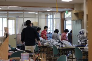 地震想定の避難訓練は、身を守る為に安全な場所の確保と