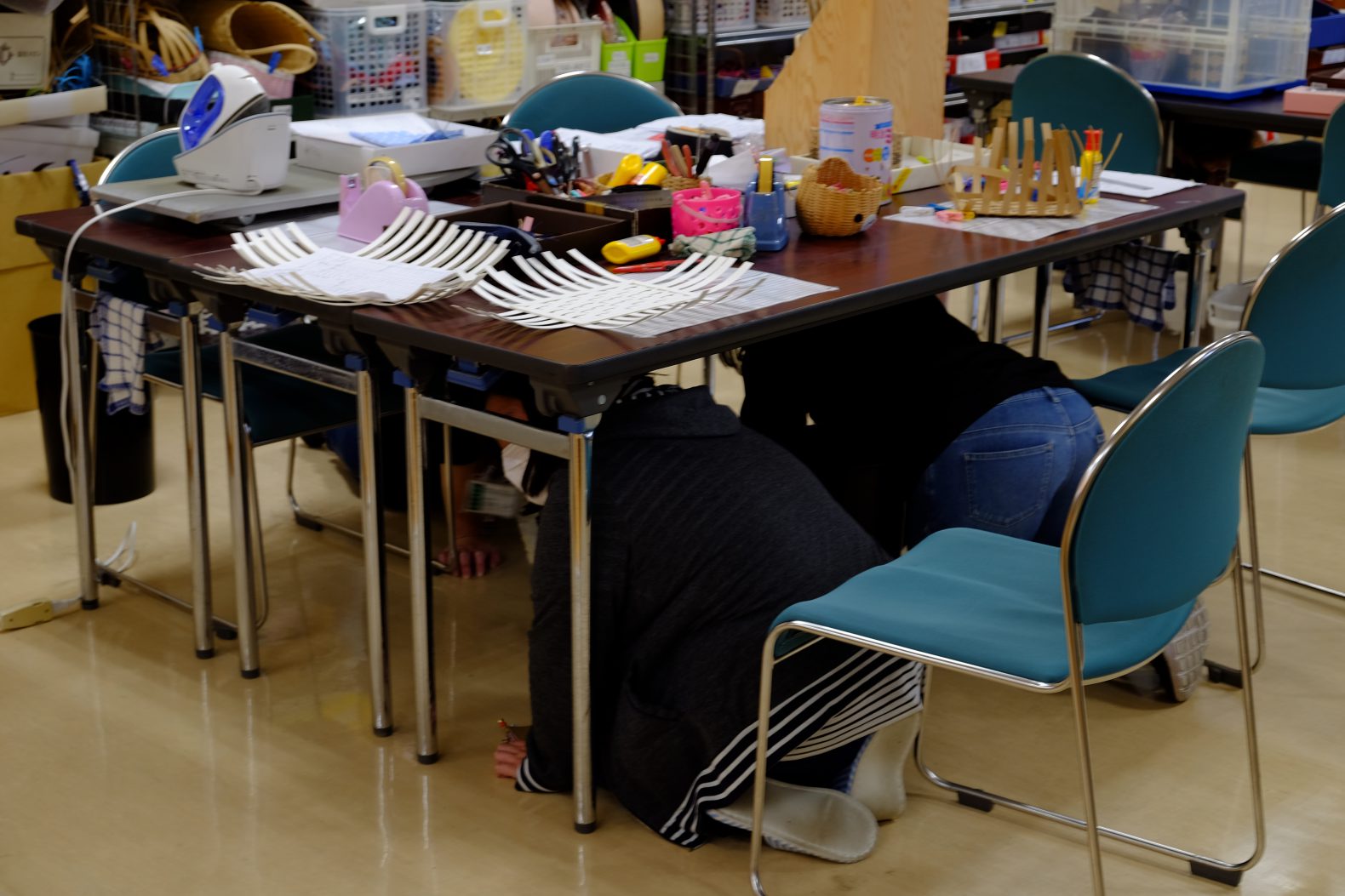 地震想定の避難訓練は、身を守る為に安全な場所の確保と