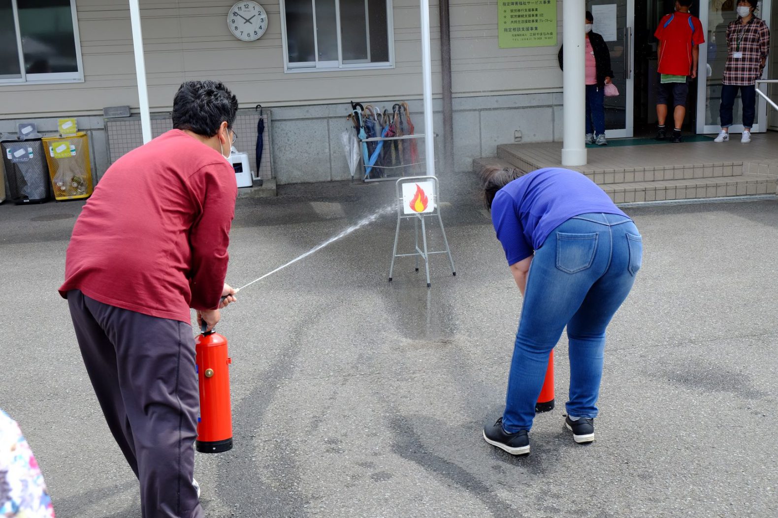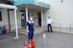 その後、消火訓練をしましたが、「火事だ!」と大きな声が出て真剣に参加されていました。