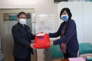 ワークサポートやまなみにも来設してくれました。活動の説明、啓発用品を配布してくださいました。