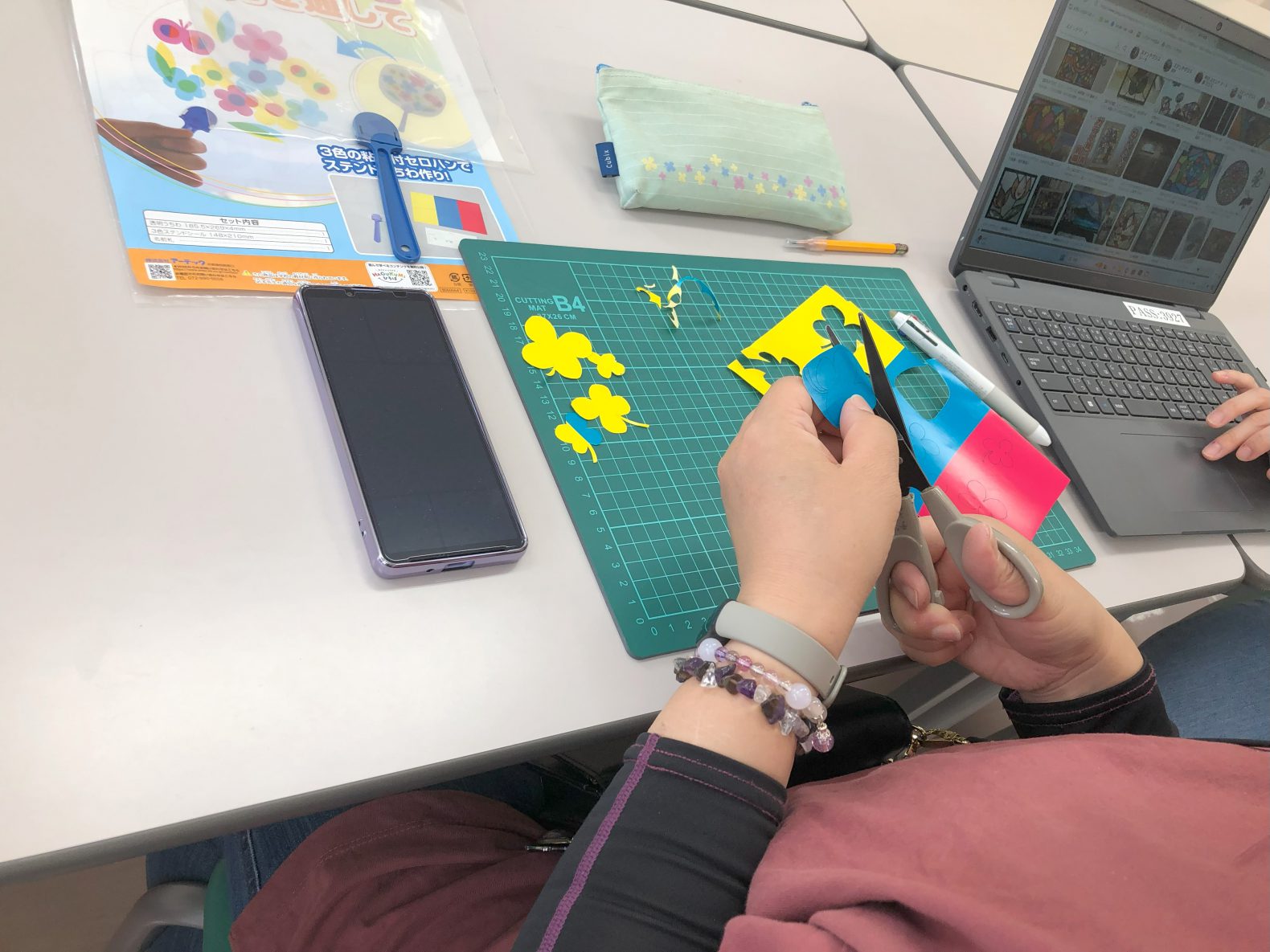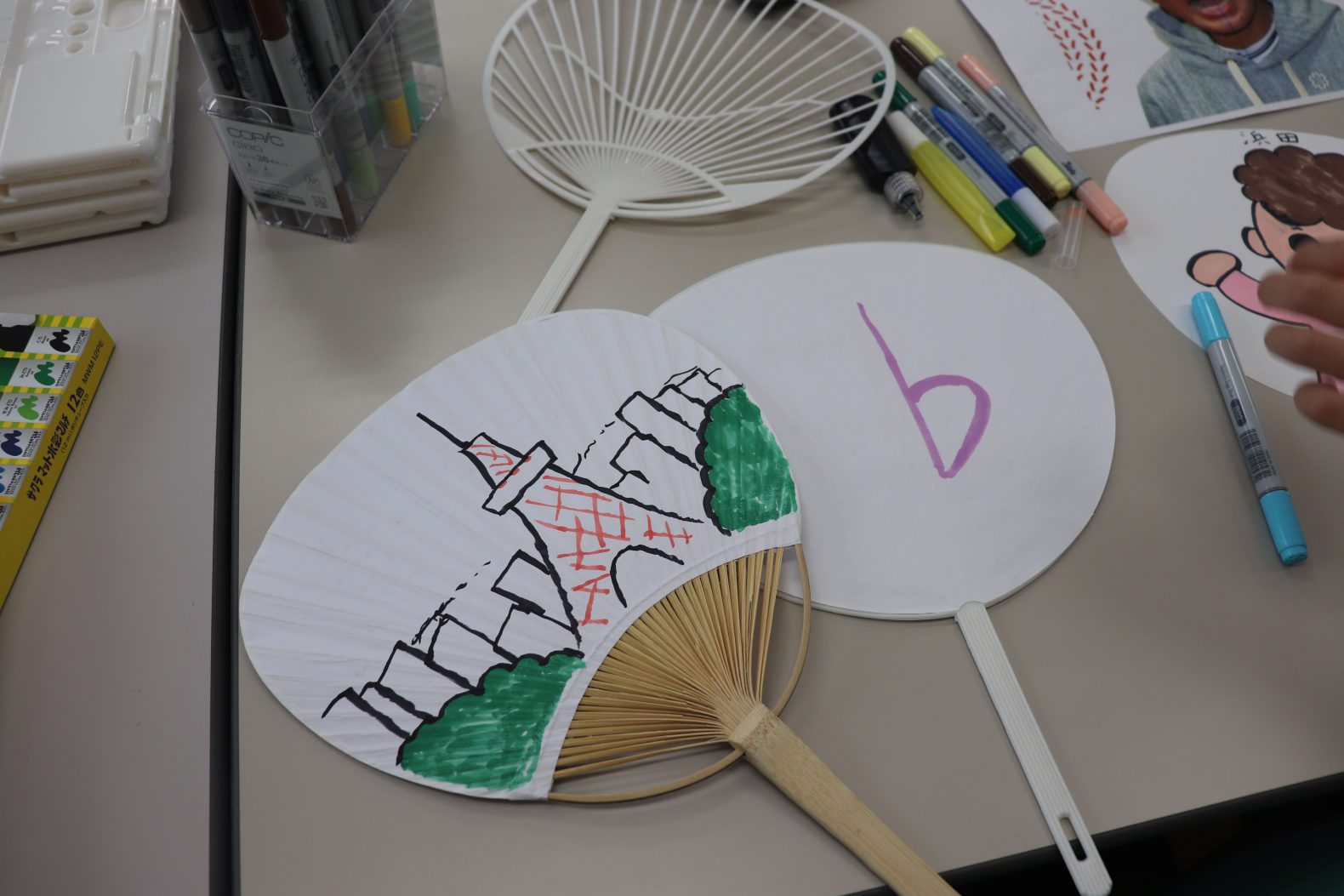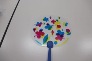 今回は「手作りうちわ」を作製しました。様々な種類のうちわにステンドグラス風のシールを貼ったり、思い思いのイラストを描かれていました。