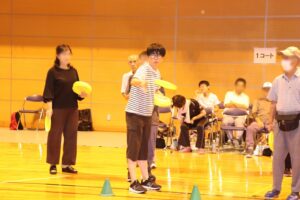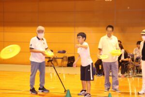 令和6年9月17日(火)三好市・東みよし町社会福祉協議会主催のフライングディスク大会が三野体育館で開催し、やまなみからも参加してきました。