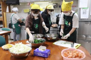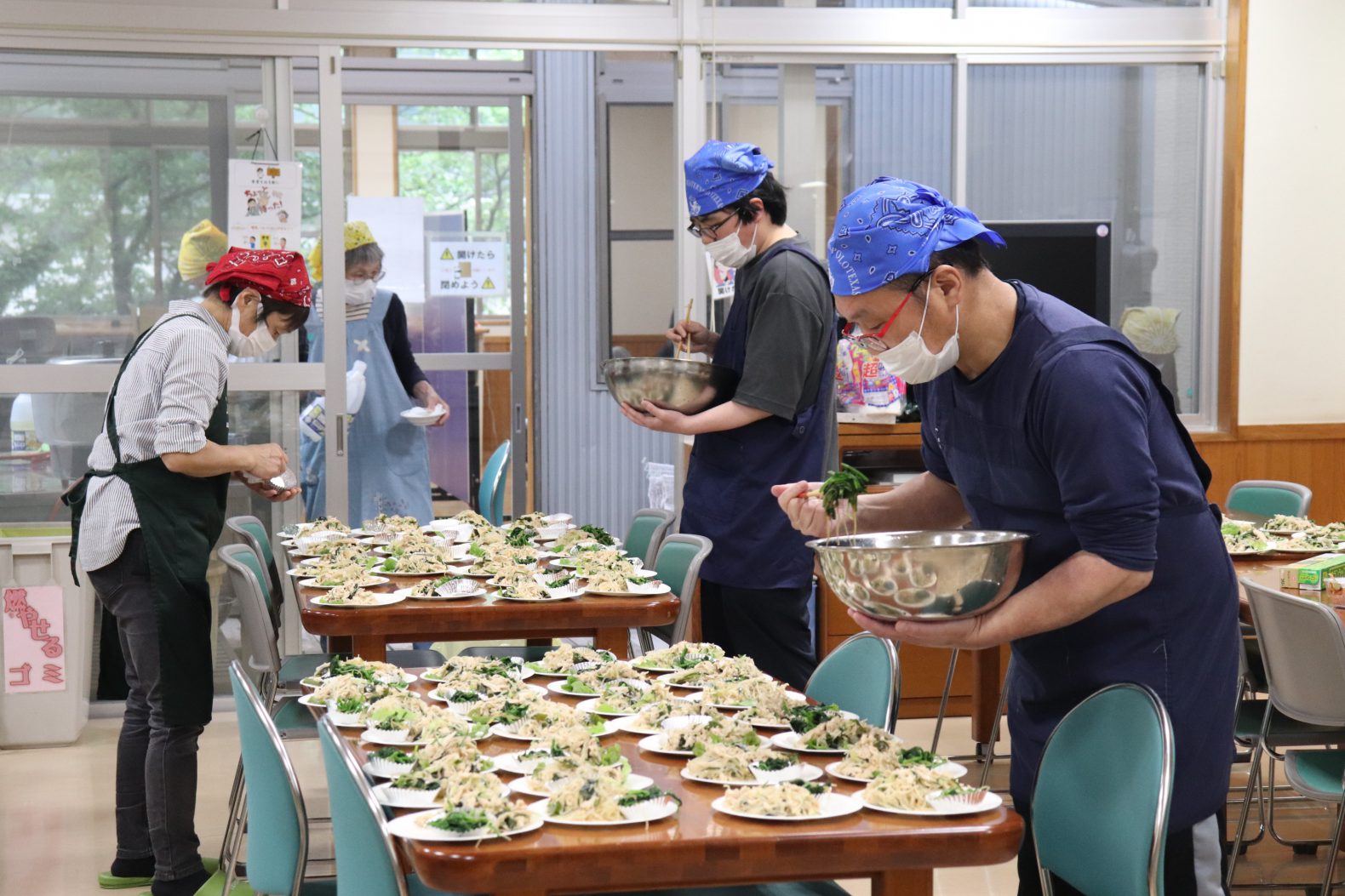 精神保健ボランティアハートみよしのメンバーさんが調理をしてくださり