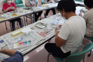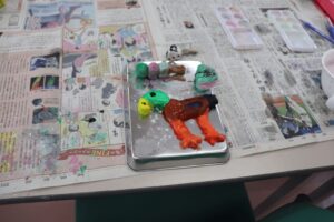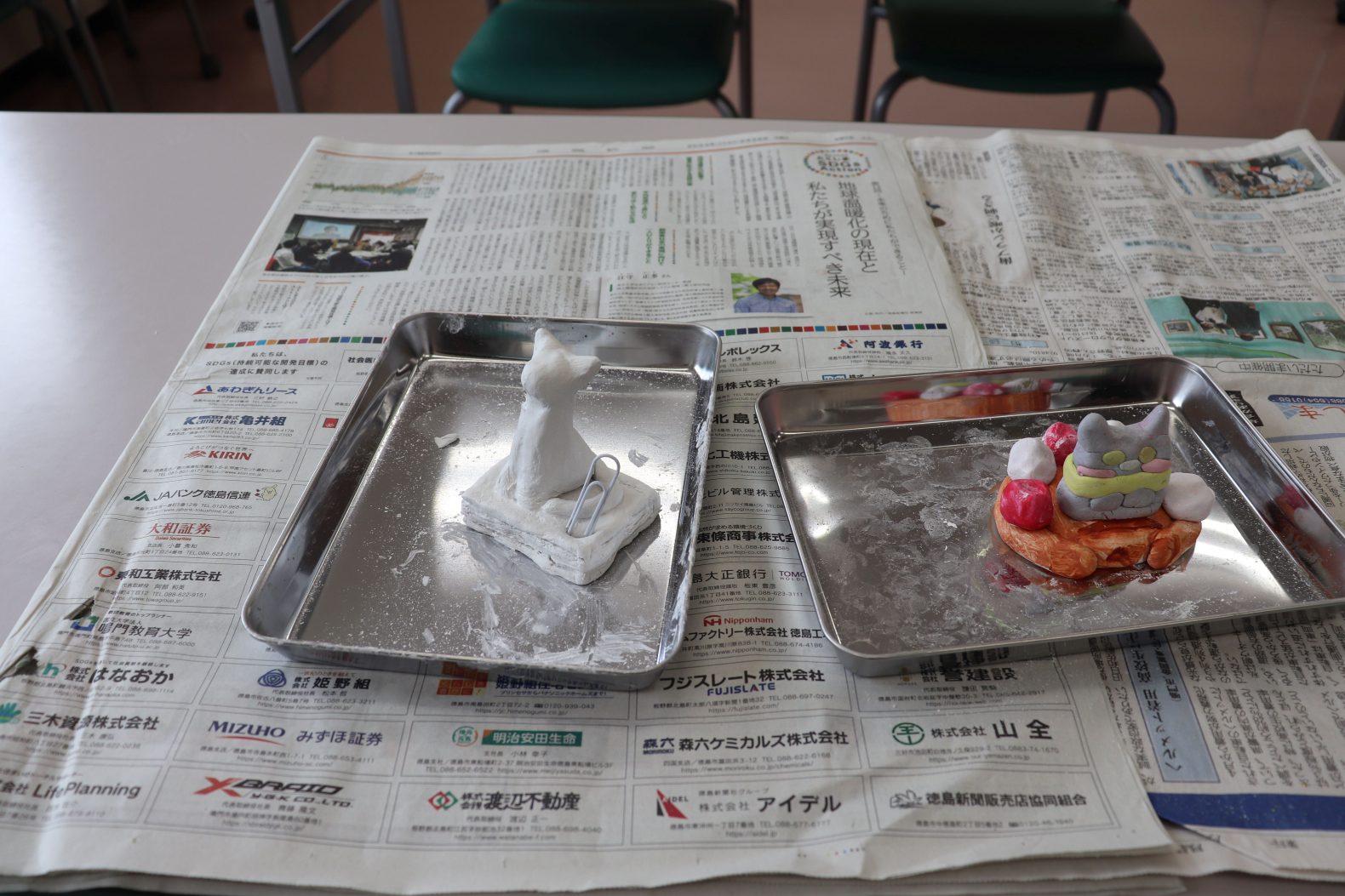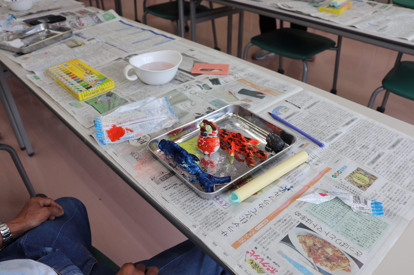 第8回目 アートクラブ 2023-07-03 今回のアートクラブは,紙粘土を使用したメモスタンド作りです☆ 皆さんそれぞれに思い描いた形を紙粘土で作られていました。 皆さん手元に一点集中です!! ☆クジラと鯉とダルマです☆ ☆鴨のあんこちゃんです☆ ☆ミニミニ小動物です☆ ☆ネコちゃんです☆ 沢山かわいい作品が出来ました♪♪