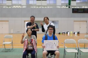 スポーツ大会参加 2023-07-31 7月23日(日)に、三好市・東みよし町合同障害者スポーツ大会に参加しました。 たくさんの方が参加されており、やまなみの利用者さんは3名でしたが皆さん楽しく競技に参加されていました。 3チームに分かれ、東みよしチームが優勝となりました。おめでとうございます!