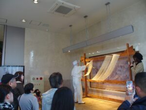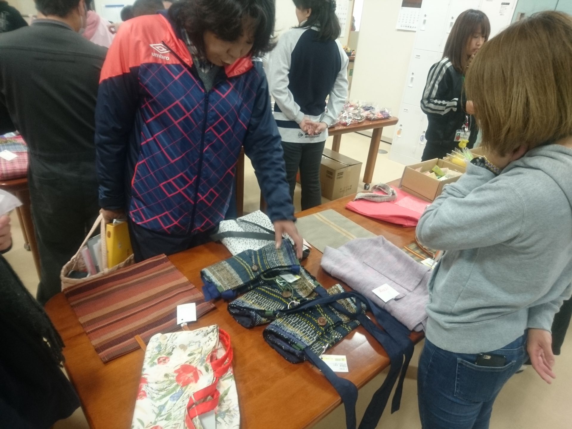 NPO法人ぴあ ルーテル作業センタームゲンで製作されている着物の生地を利用したアクセラリーや洋服、バッグなども展示、販売して頂きました。遠方よりご足労頂きまして、また貴重なお話ありがとうございました。