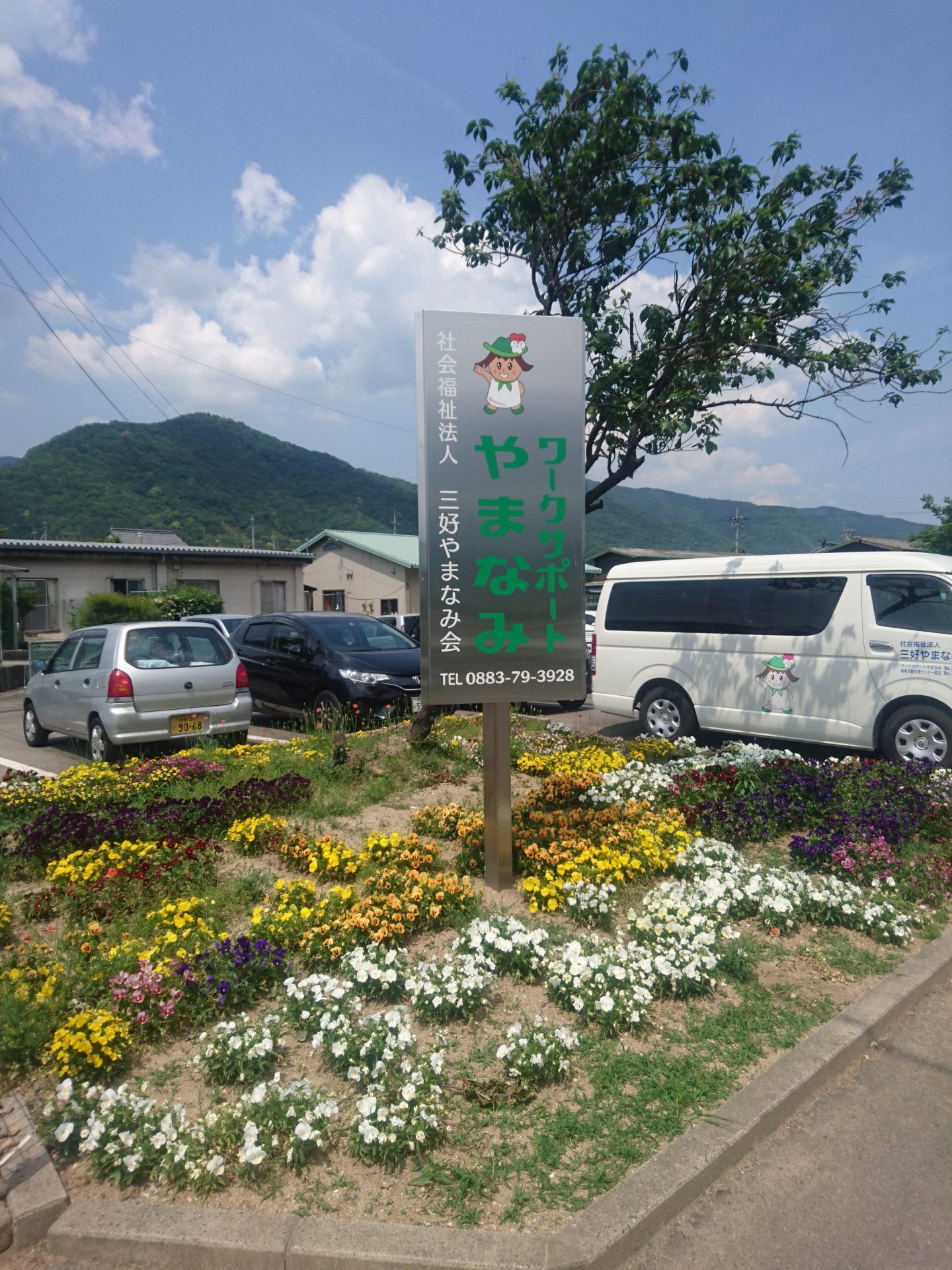 やまなみの駐車場の入り口には花壇があり、花を植えています。