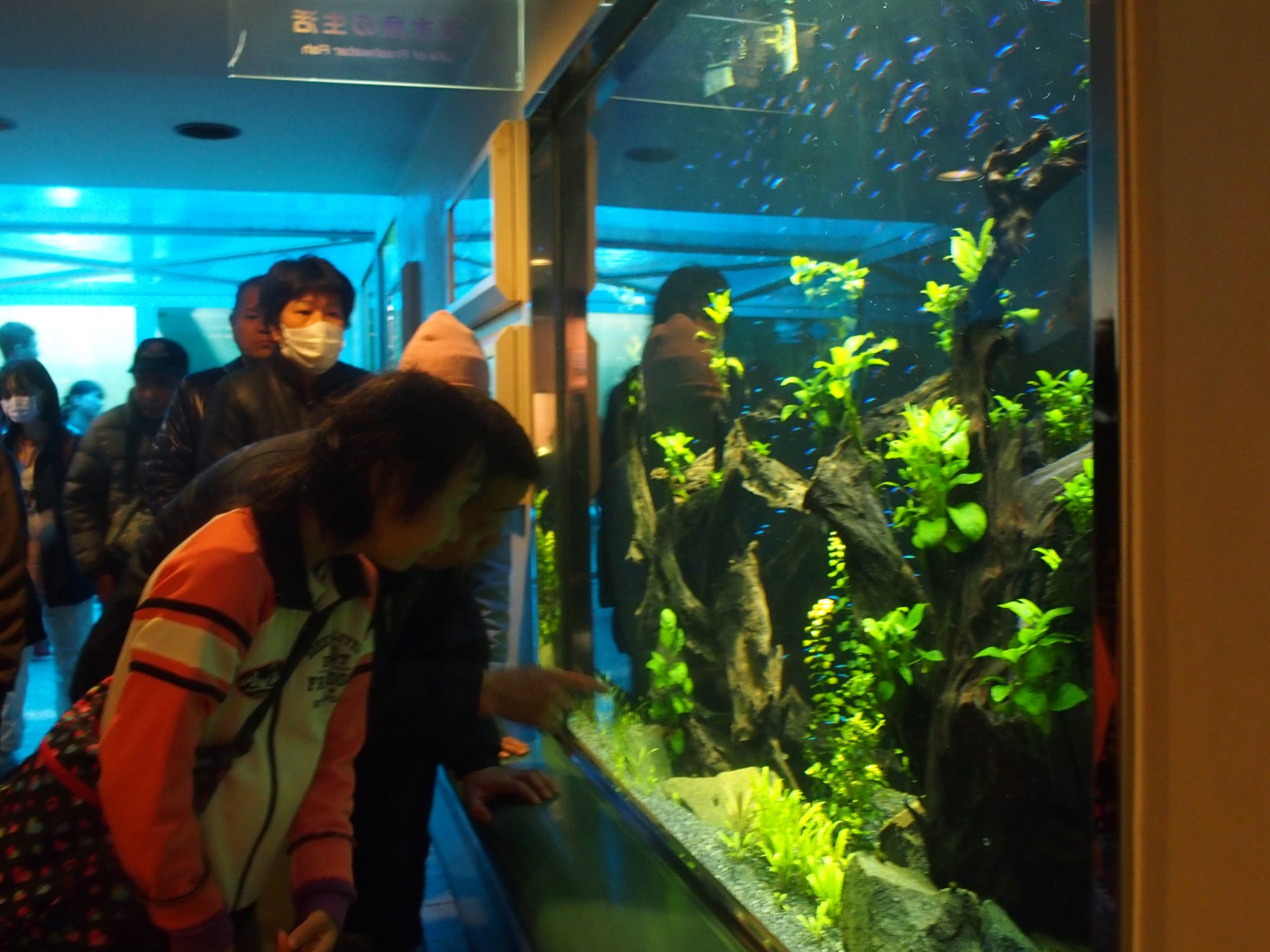 見たこともない世界各地の魚を見て、みなさん写真を撮ったり、